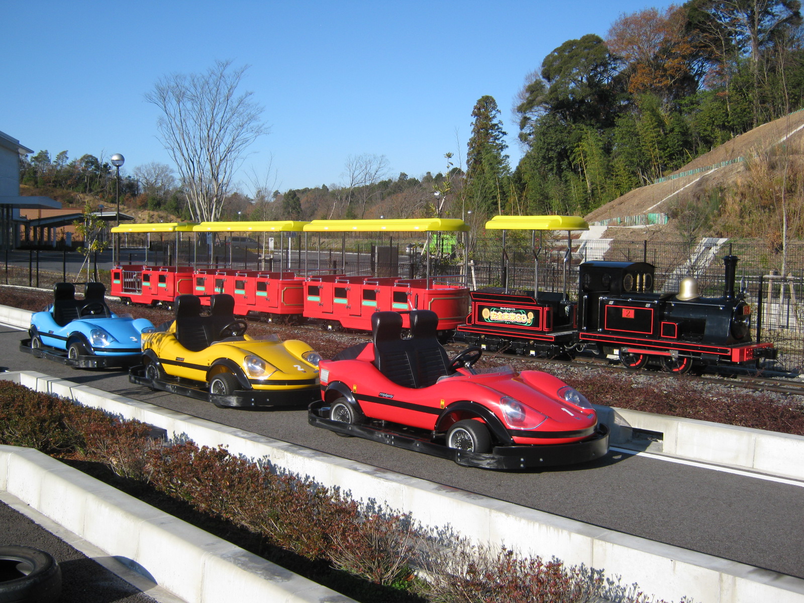 ・ミニSL、ゴーカート、様々な乗り物の形をした遊具で遊ぶことができます。