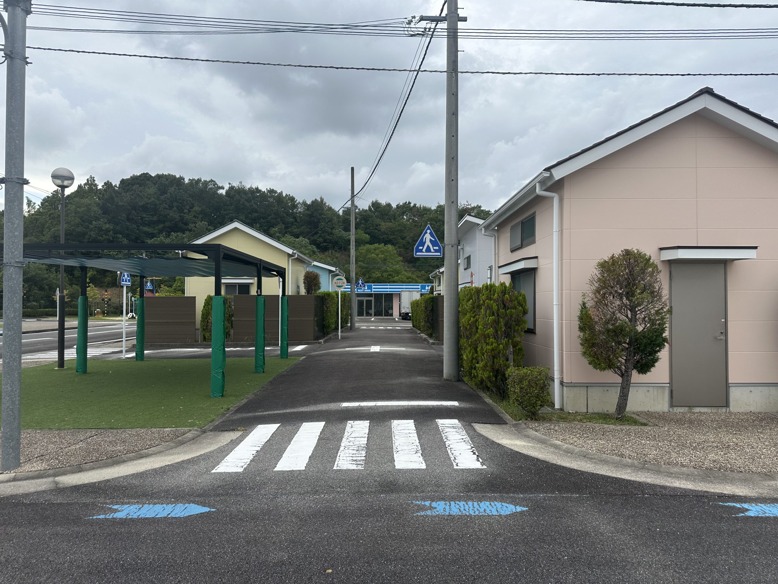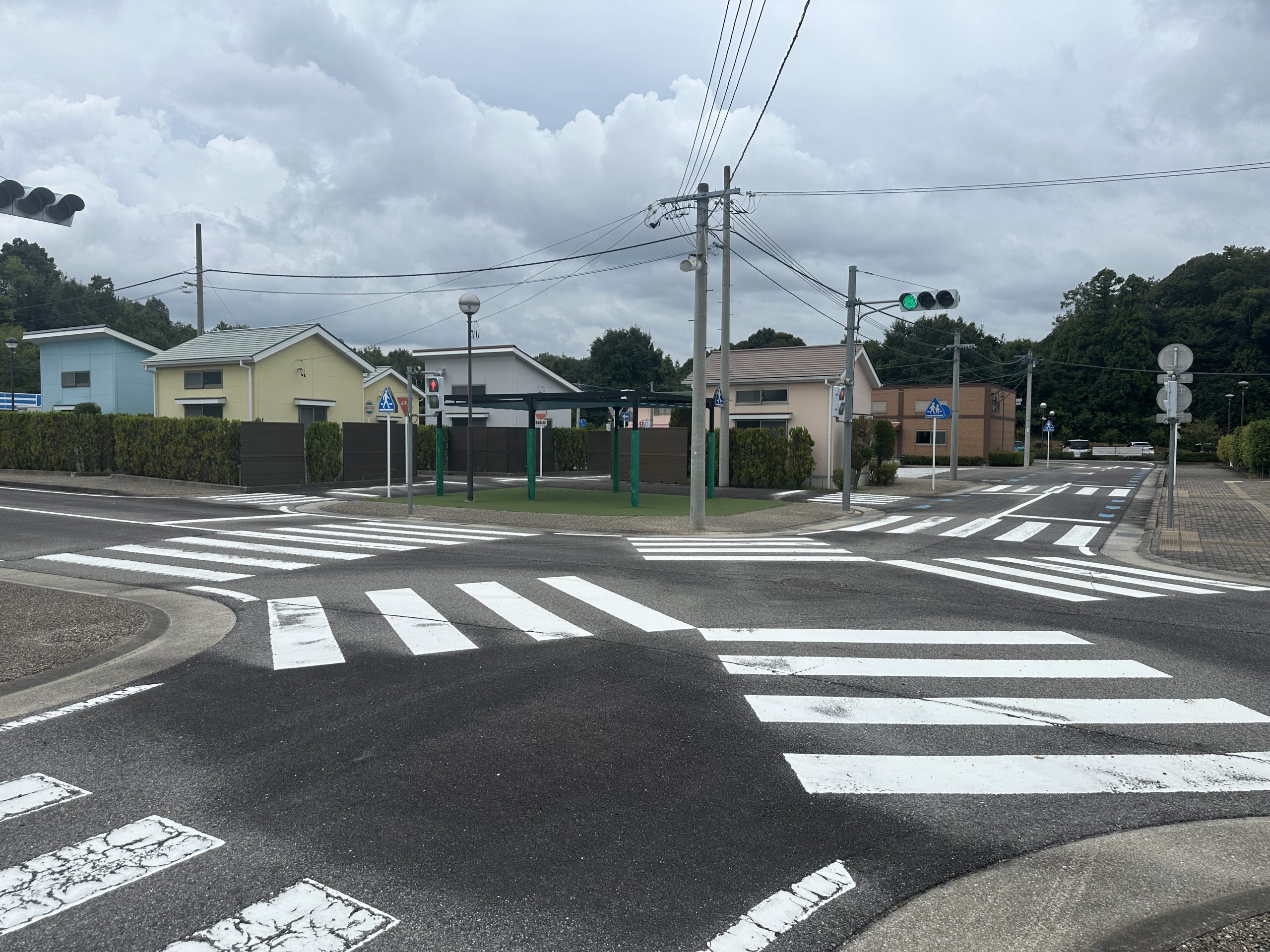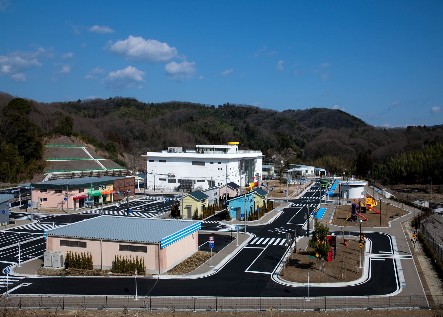 ・信号機、踏切、住宅棟、商業施設、コンビニ等を設置した模擬市街地があります。